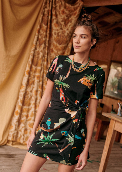 Maillot 1 pièce sculptant stylé en matière gainante - noir/imprimé multicolore